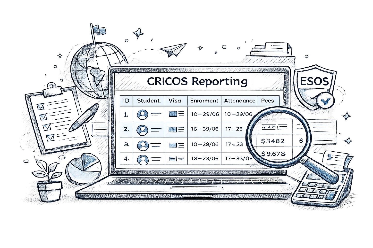 SELMA's CRICOS functionality connects Australian international education providers with Provider Registration and International Student Management System meeting regulatory obligations for international student enrolment and welfare. Automate PRISMS data submission transmitting enrolment variations, course progress, attendance monitoring, and completion data to Department of Home Affairs systems, whilst maintaining comprehensive audit trails demonstrating compliance with ESOS Act requirements. Track visa conditions, monitor course progress against satisfactory requirements, flag at-risk students requiring intervention, and generate compliance reports, giving CRICOS providers confidence in meeting international student regulatory obligations.