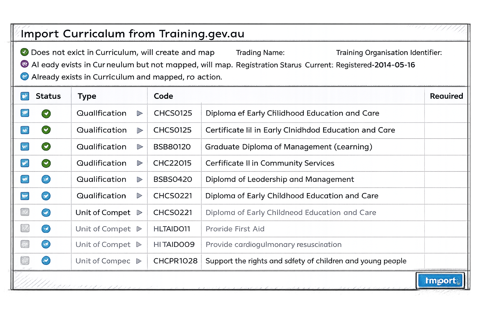 - Automatic import of qualifications and units of competency from training.gov.au