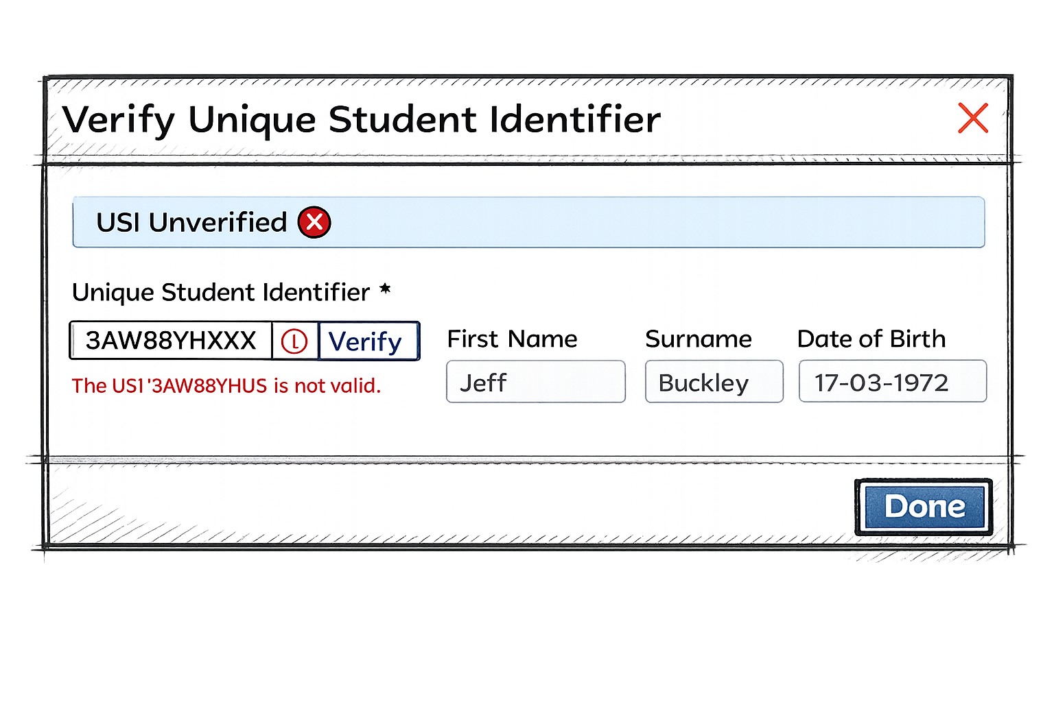 - Real-time USI validation against government registry preventing invalid identifiers