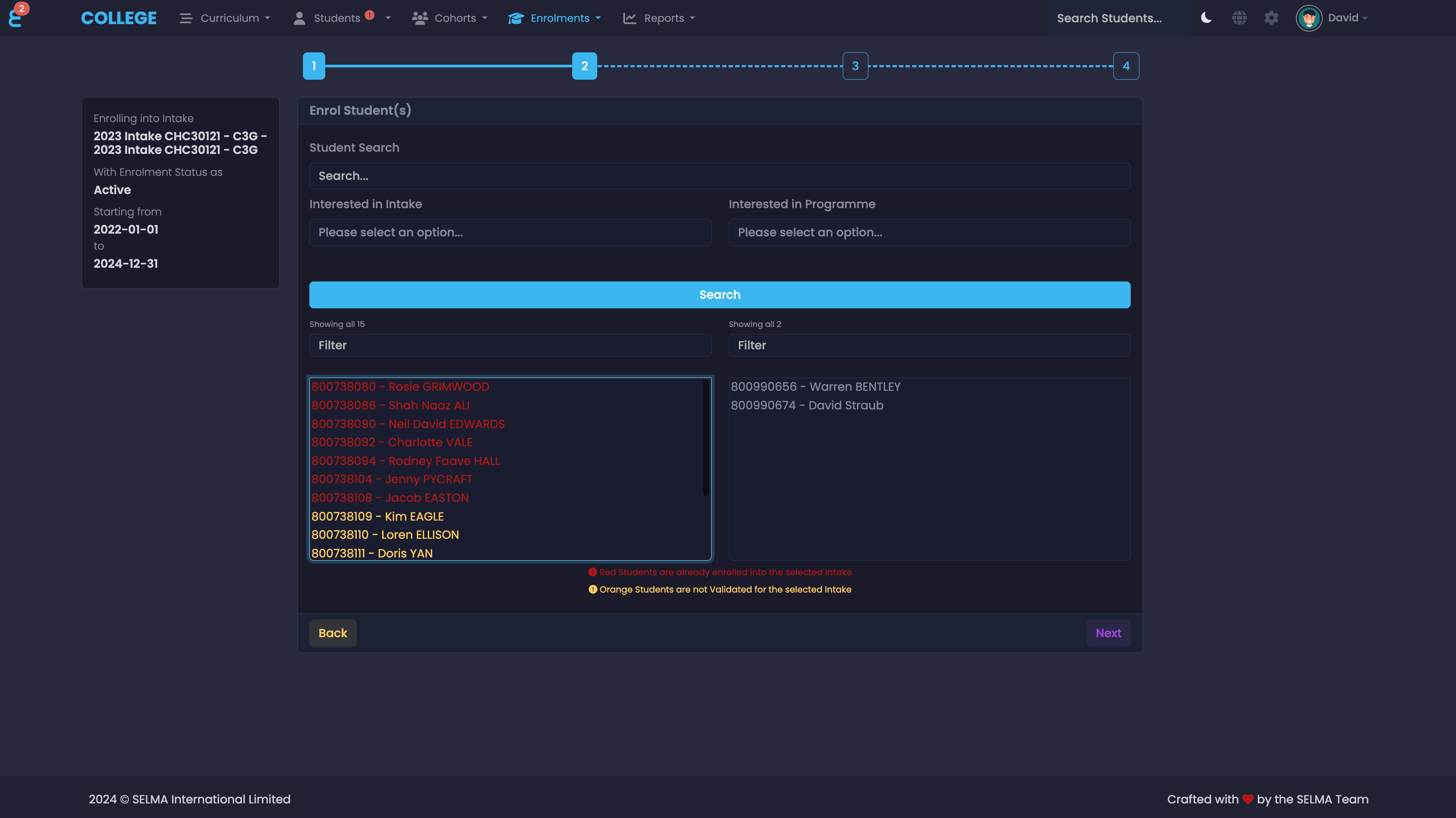 SELMA SIS allows students to enrol in courses and programmes online, streamlining the enrolment process. It features online forms, course selection, elective units, document uploads, and fee payment options. Administrators can build and maintain forms in SELMA and manage submissions in real time.