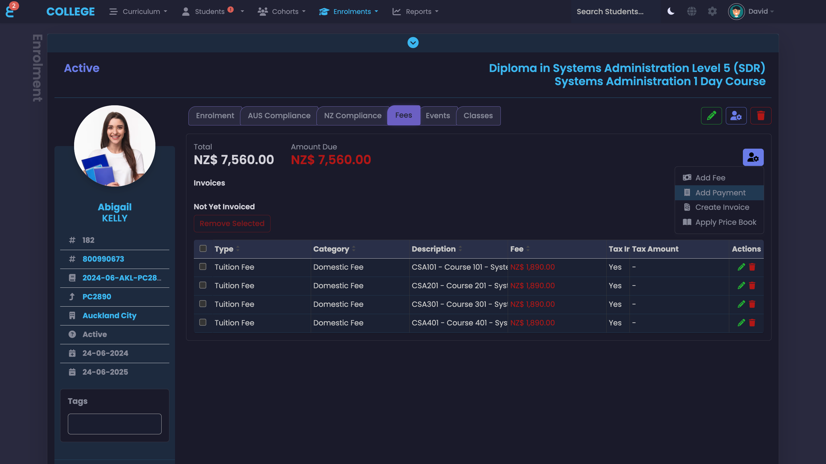 SELMA SIS integrates financial functions such as invoicing, fee payments, financial aid, and scholarships. Students can view their financial obligations and make payments online, while administrators can monitor payments and outstanding balances. Using the payment gateway, students can make progress payments and/or pay online by credit card. Unlimited price books can be created to template different pricing models for different study pathways or students.